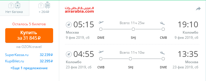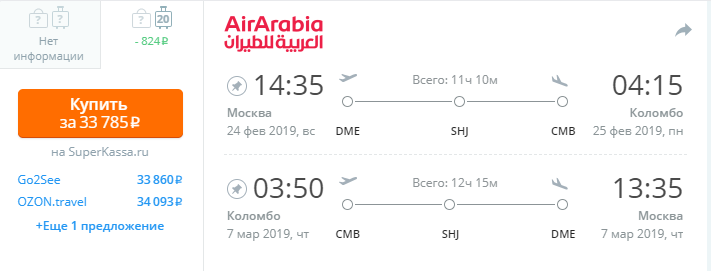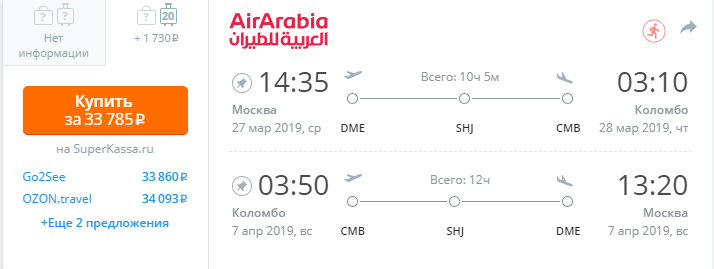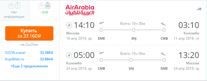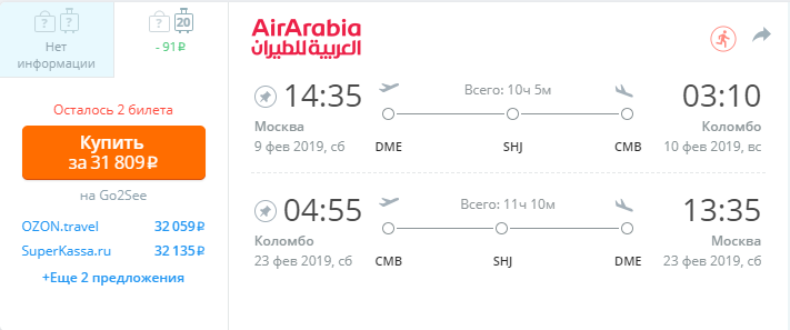 Подготовили подборку авиабилетов на Шри Ланку под наши серф-кемпы. В основном, это перелеты AirArabia / Gulf Air с 1 короткой пересадкой или пямые рейсы Аэрофлотом.