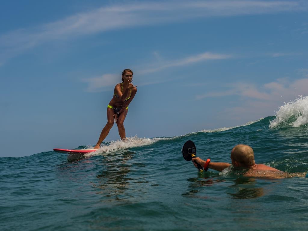 Завтрак, твой первый урок сёрфинга: знакомство с инструкторами, теория и практическое занятие. После урока делаем легкий стрейчинг, ориентированный на проработку мышц, задействованных во время серфинга.